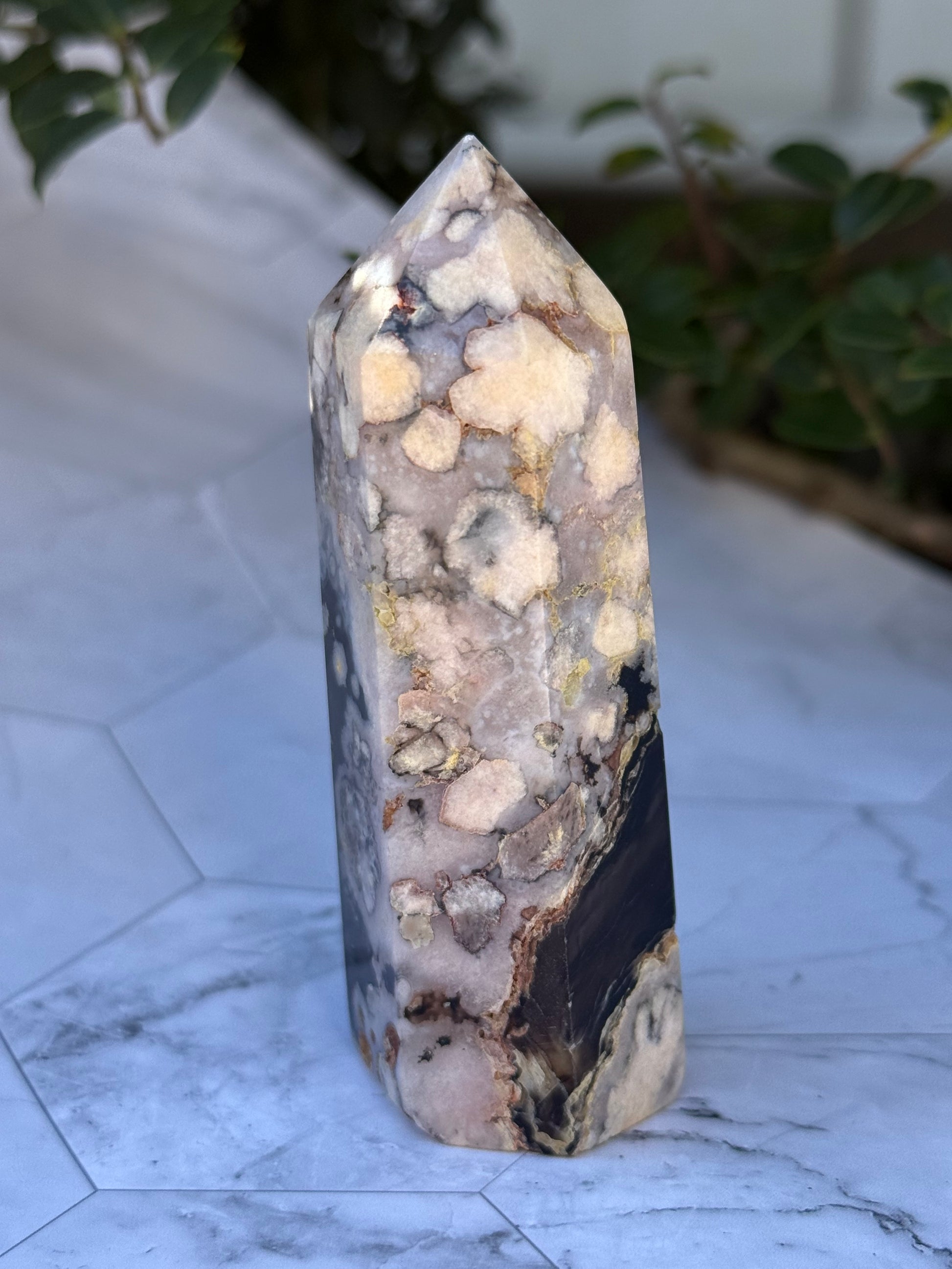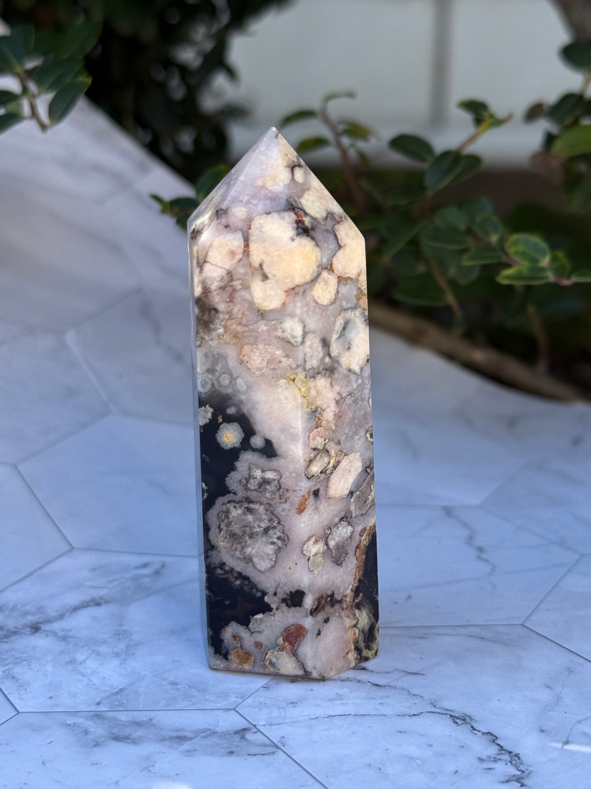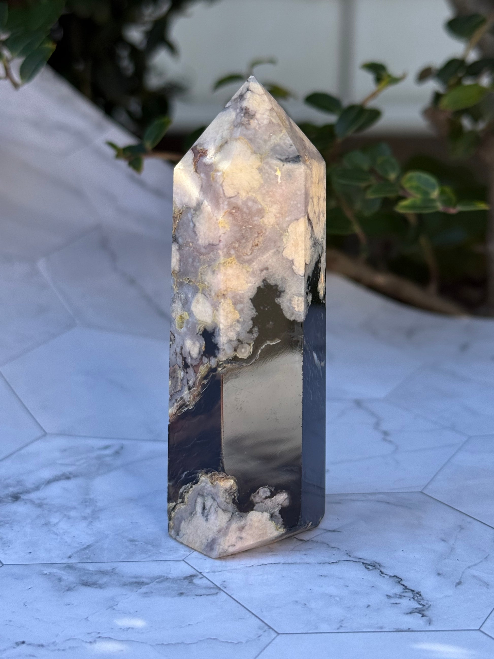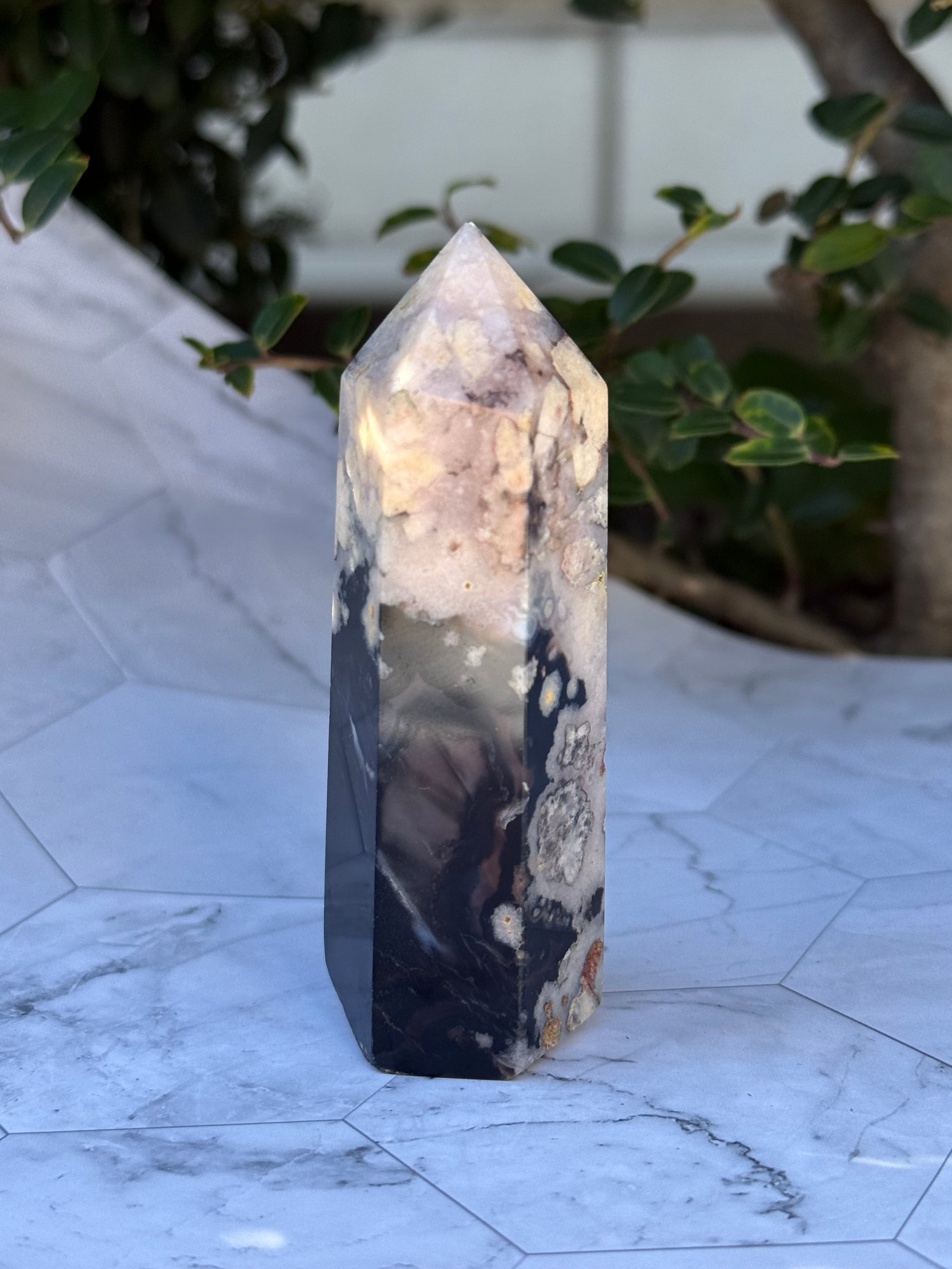 ブラックフラワーアゲート タワー|可憐さの奥に、譲らない芯を宿す