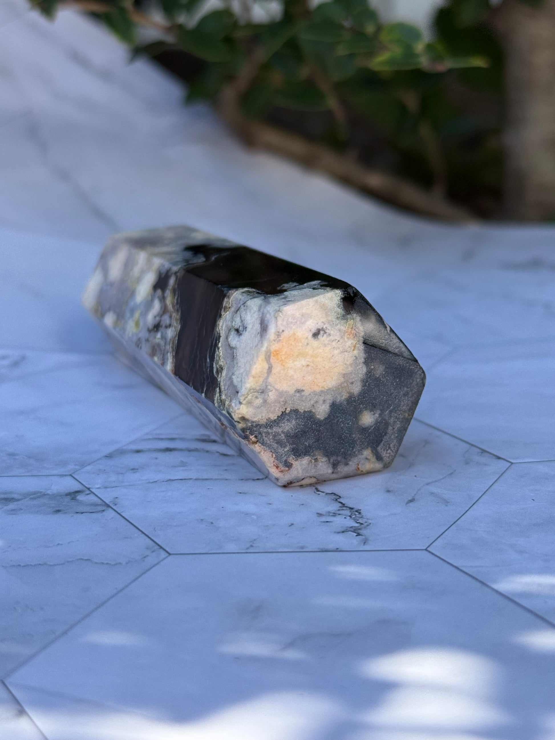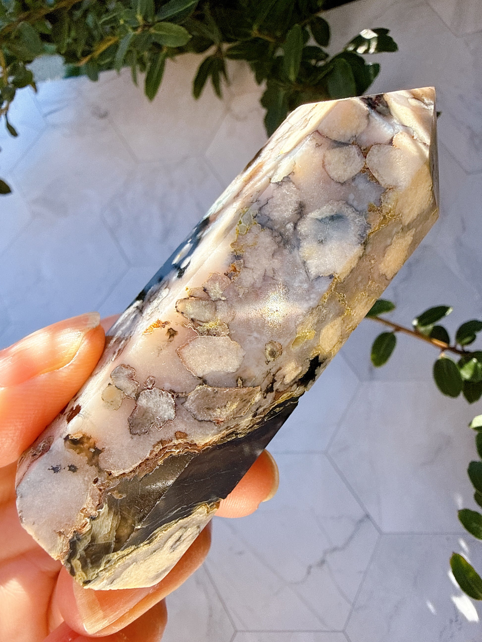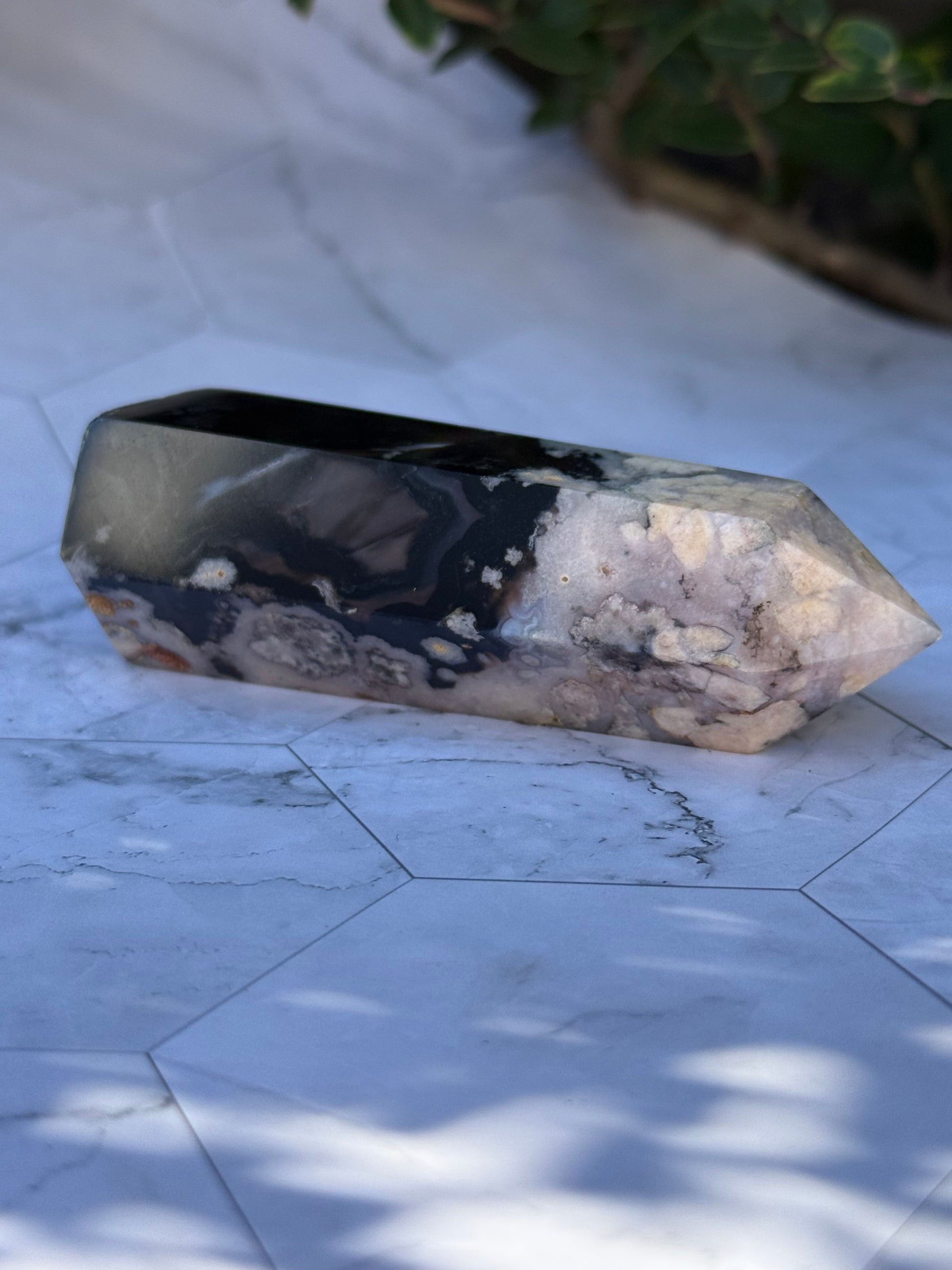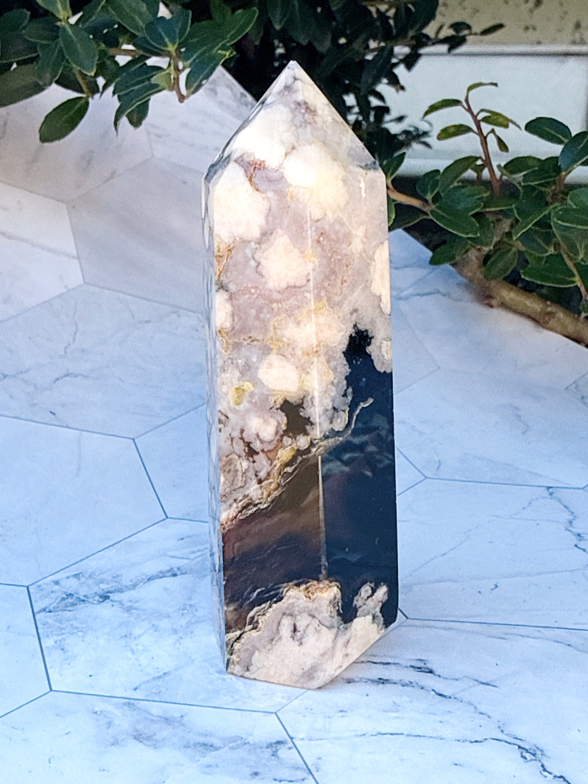 ブラックフラワーアゲート タワー|可憐さの奥に、譲らない芯を宿す
