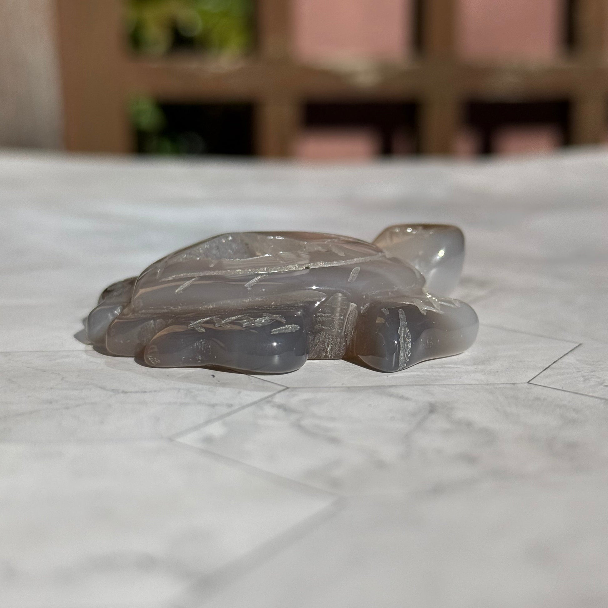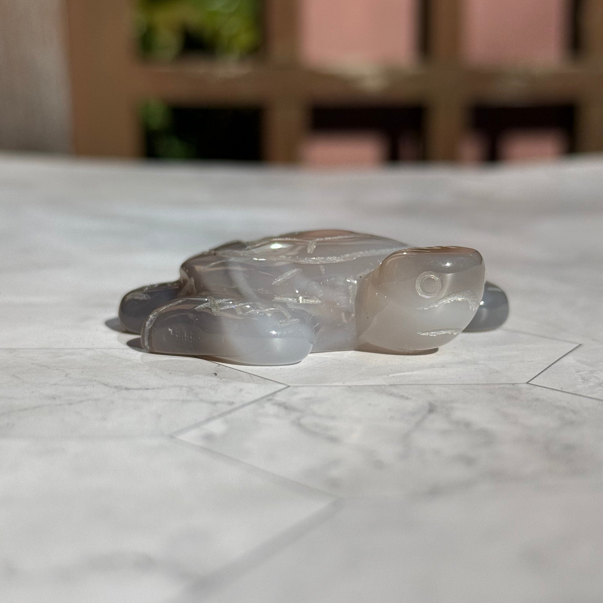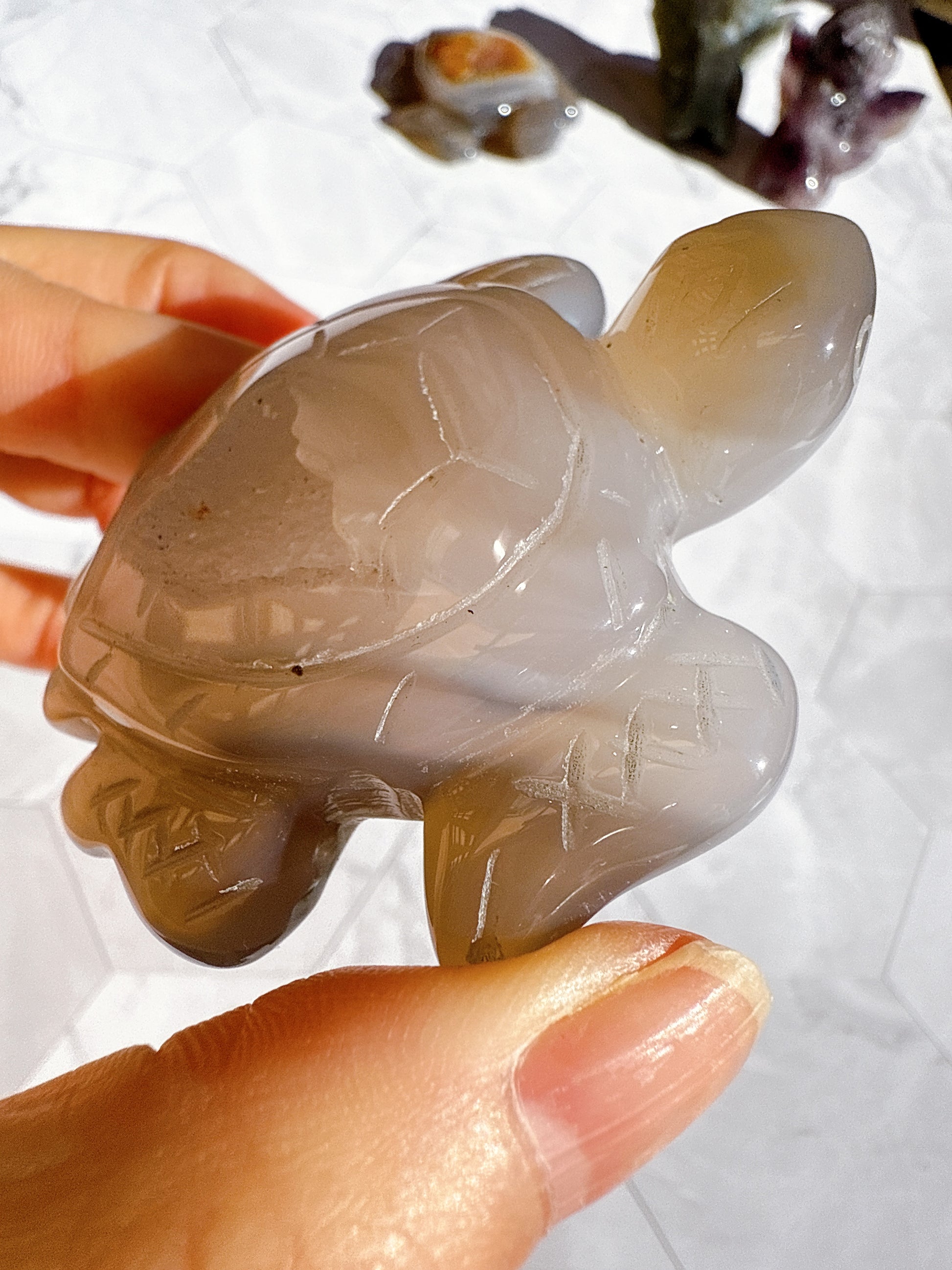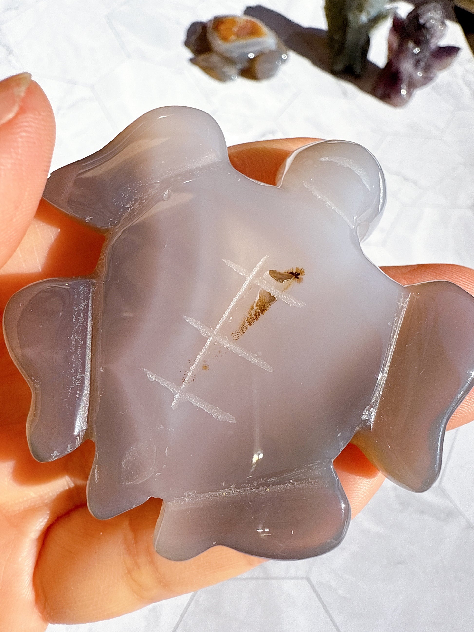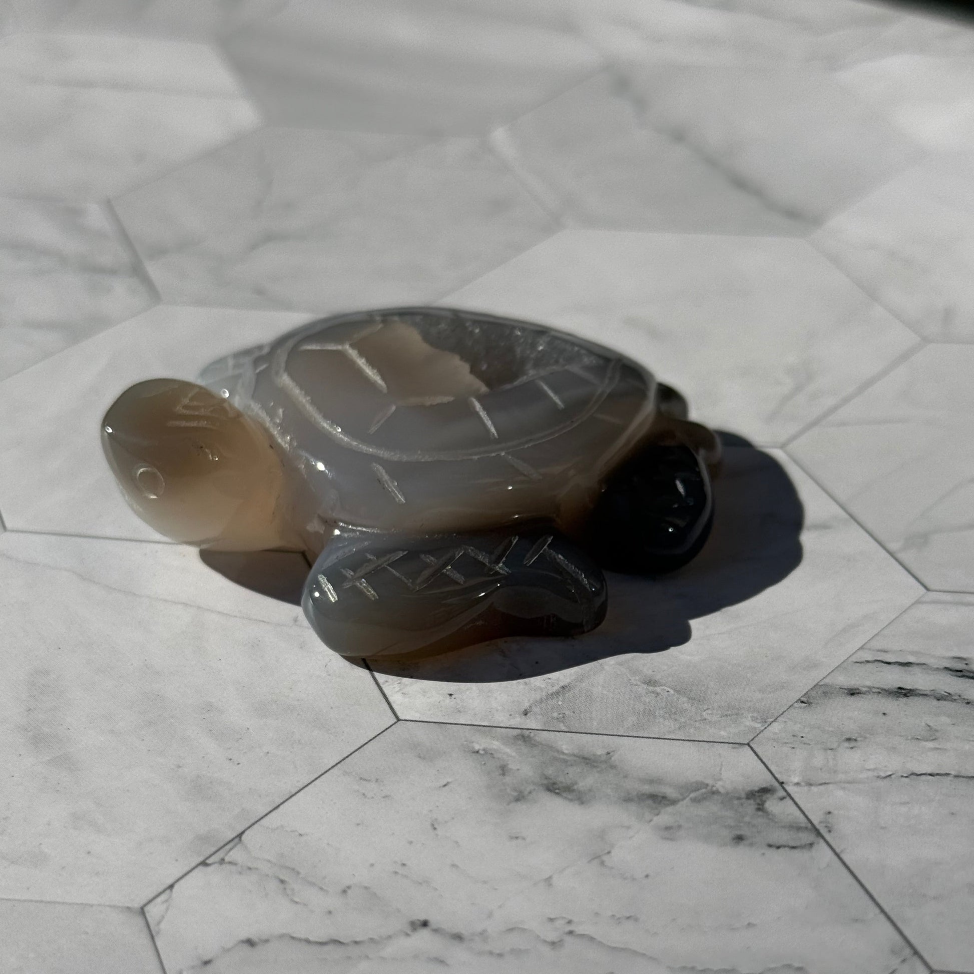 送料無料 アゲート ドゥルージー 瑪瑙 カメ 亀