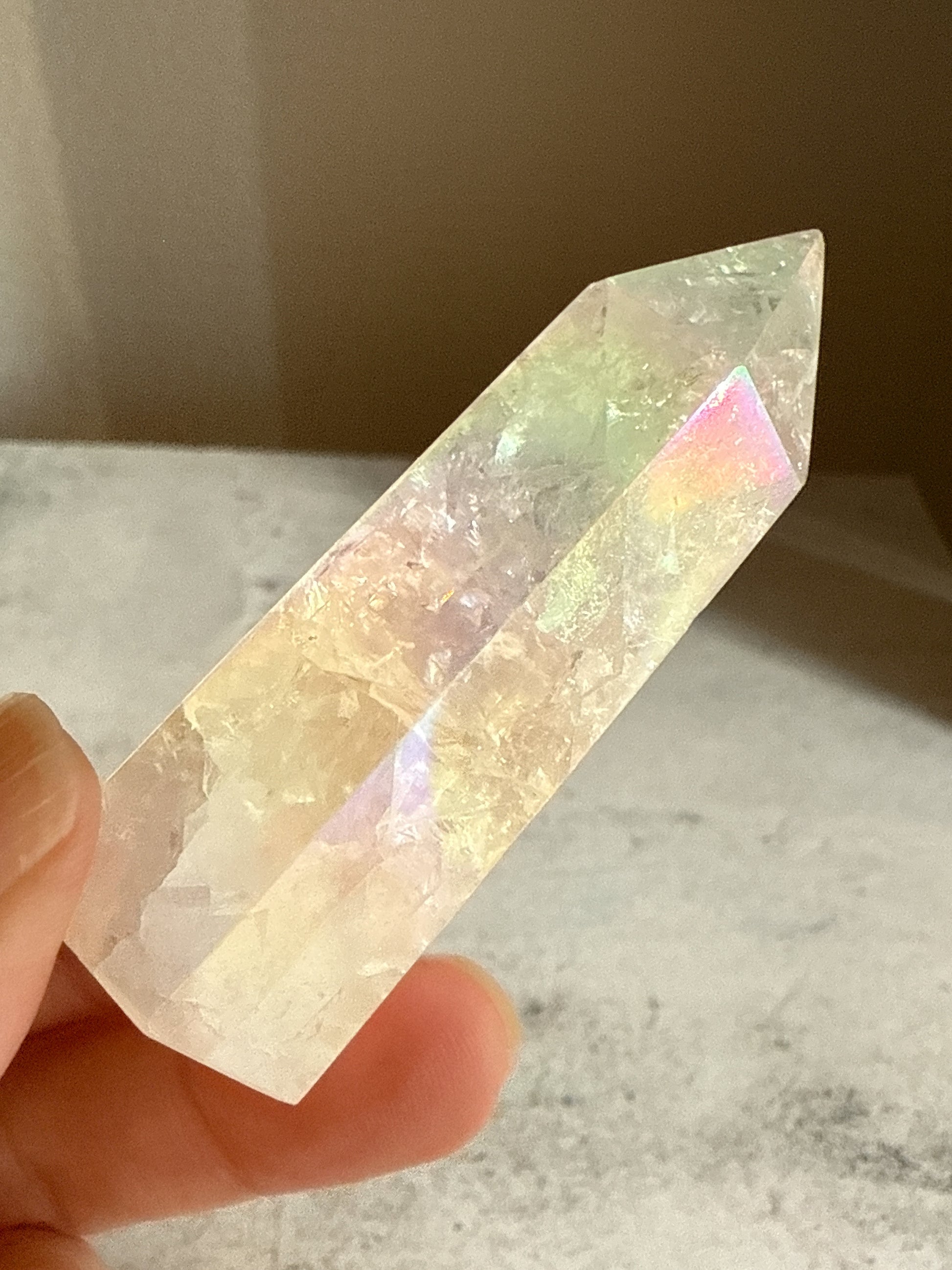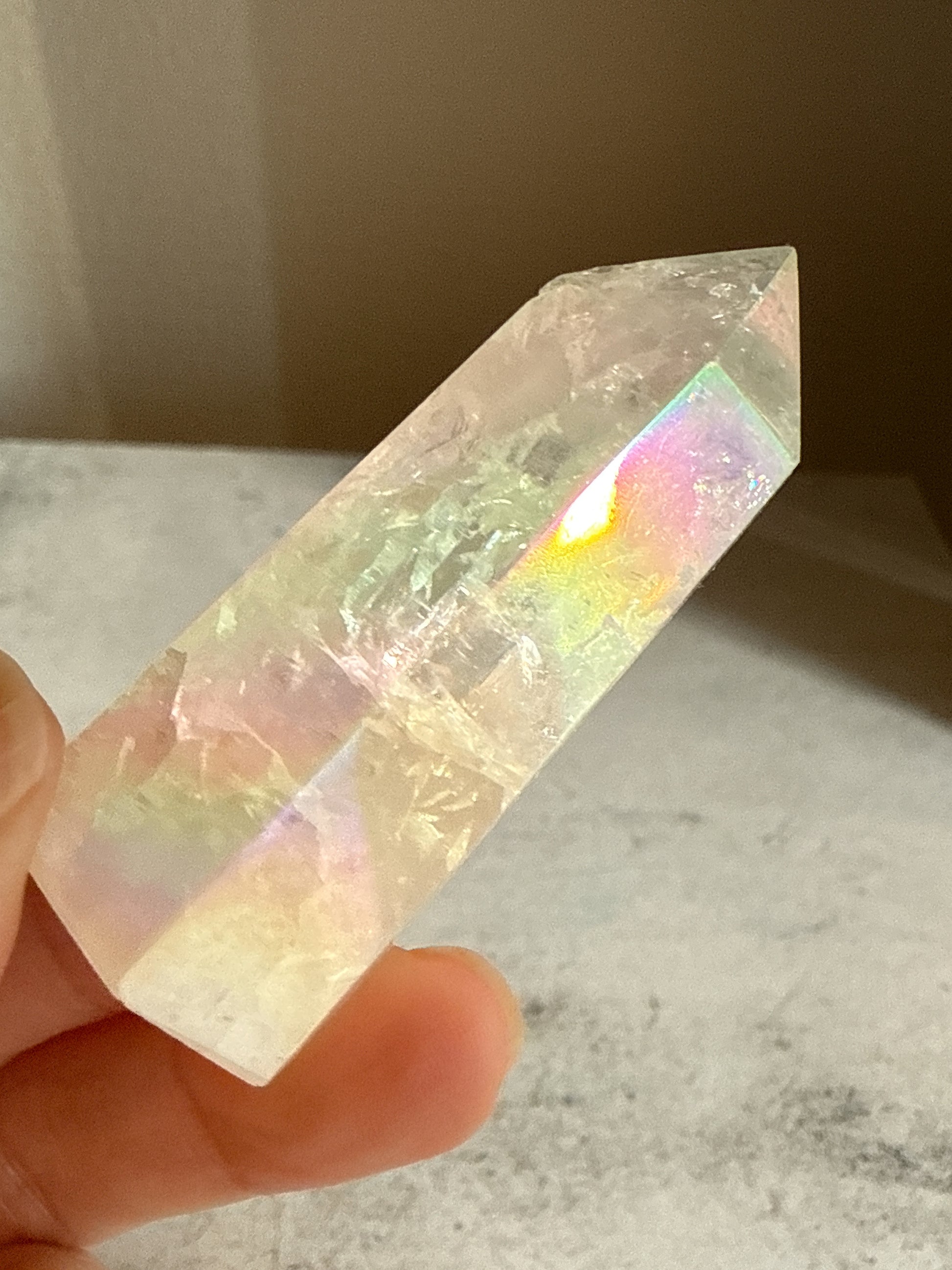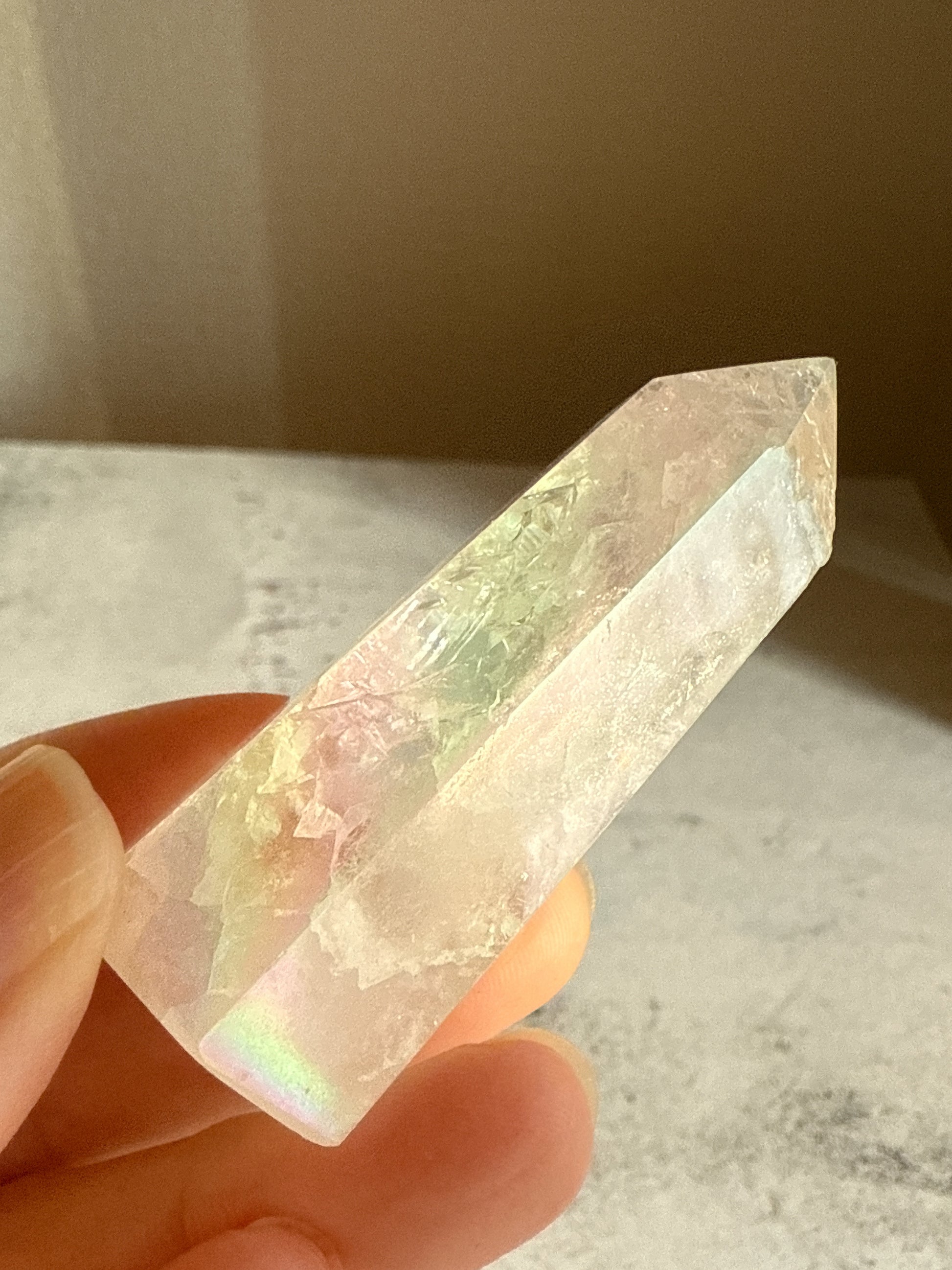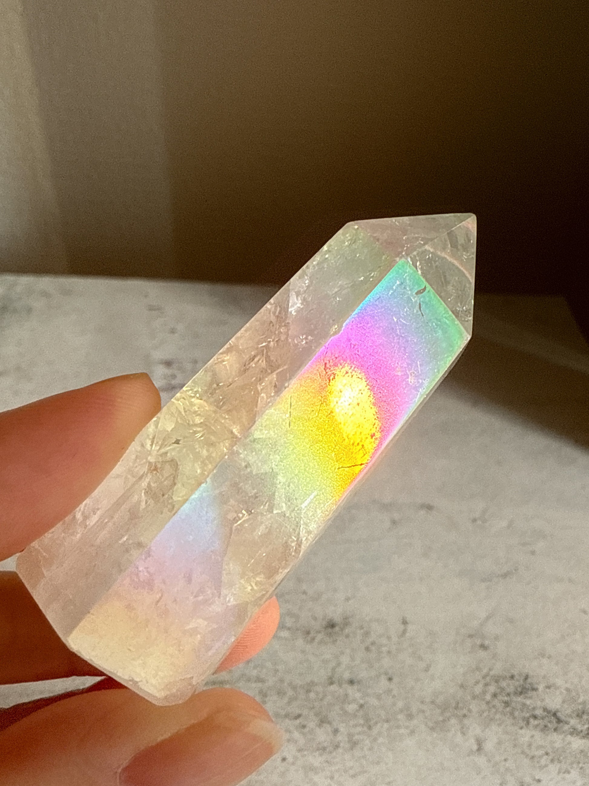 天然石 クラックオーラクォーツ タワー B 44g|光と幸運を引き寄せるプリズムタワー