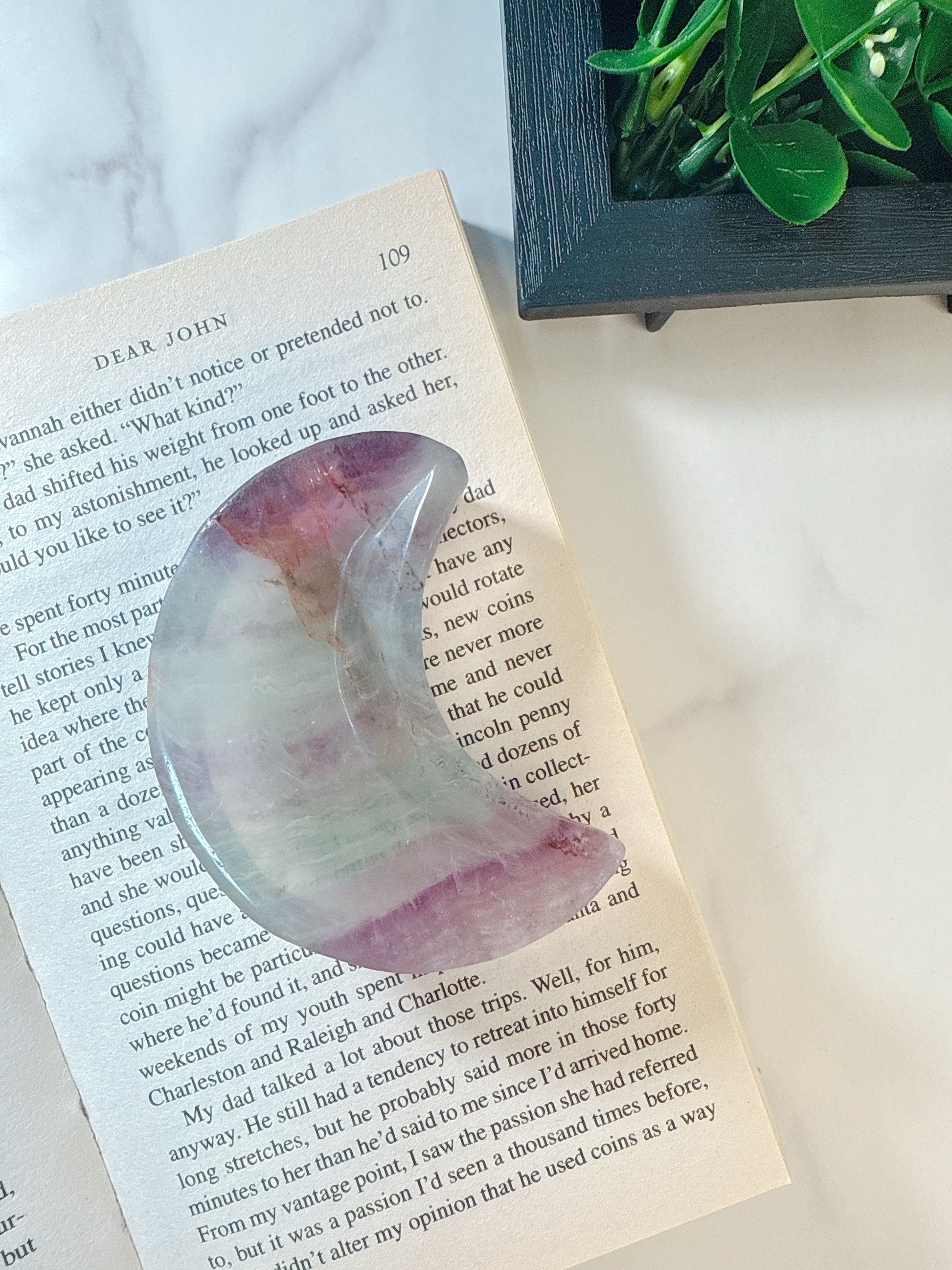 月の光を抱くヒーリングプレート|フローライト 月型 小皿 トレイFluorite Moon Dish