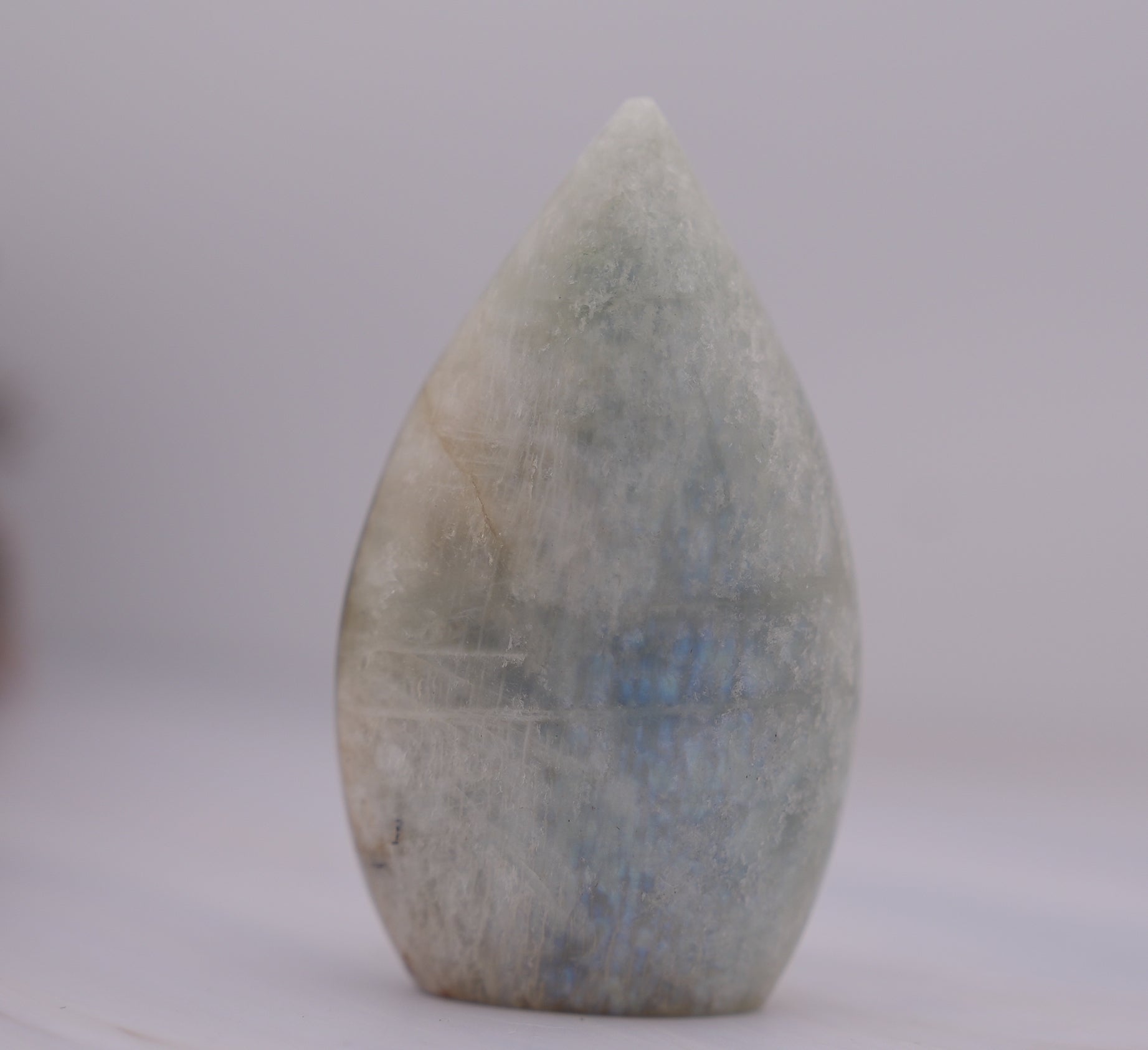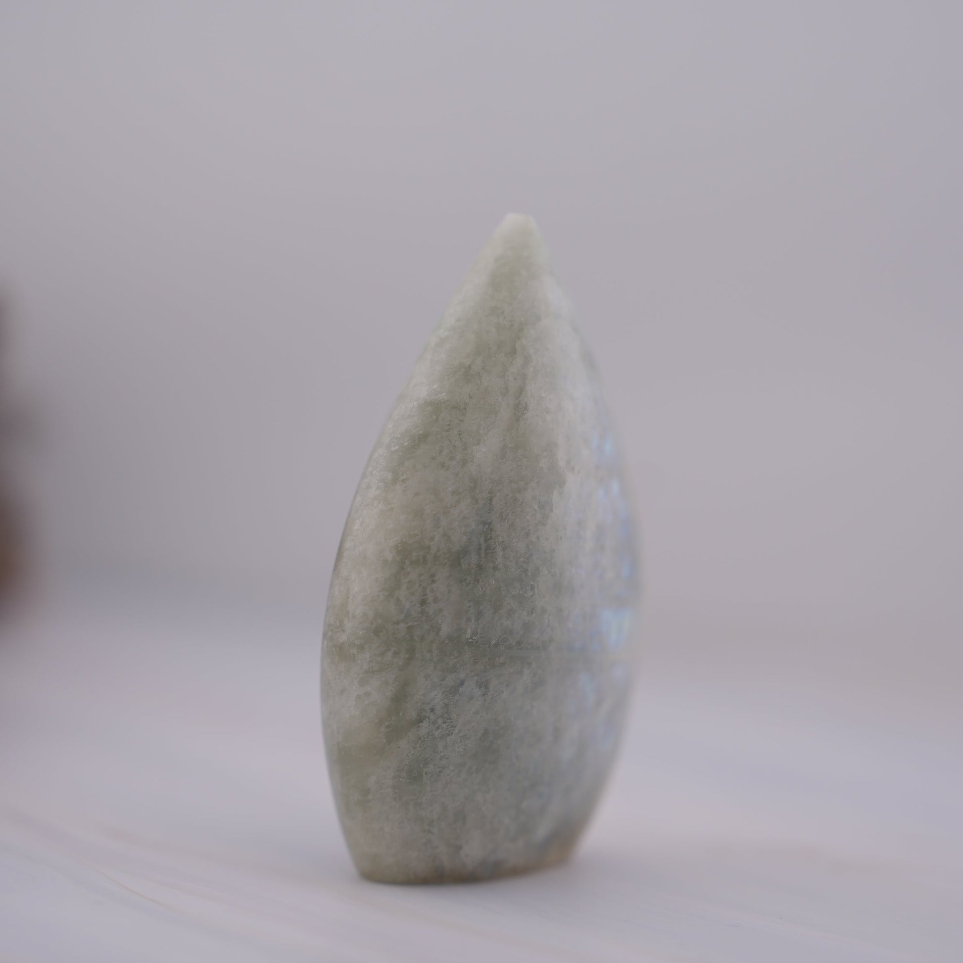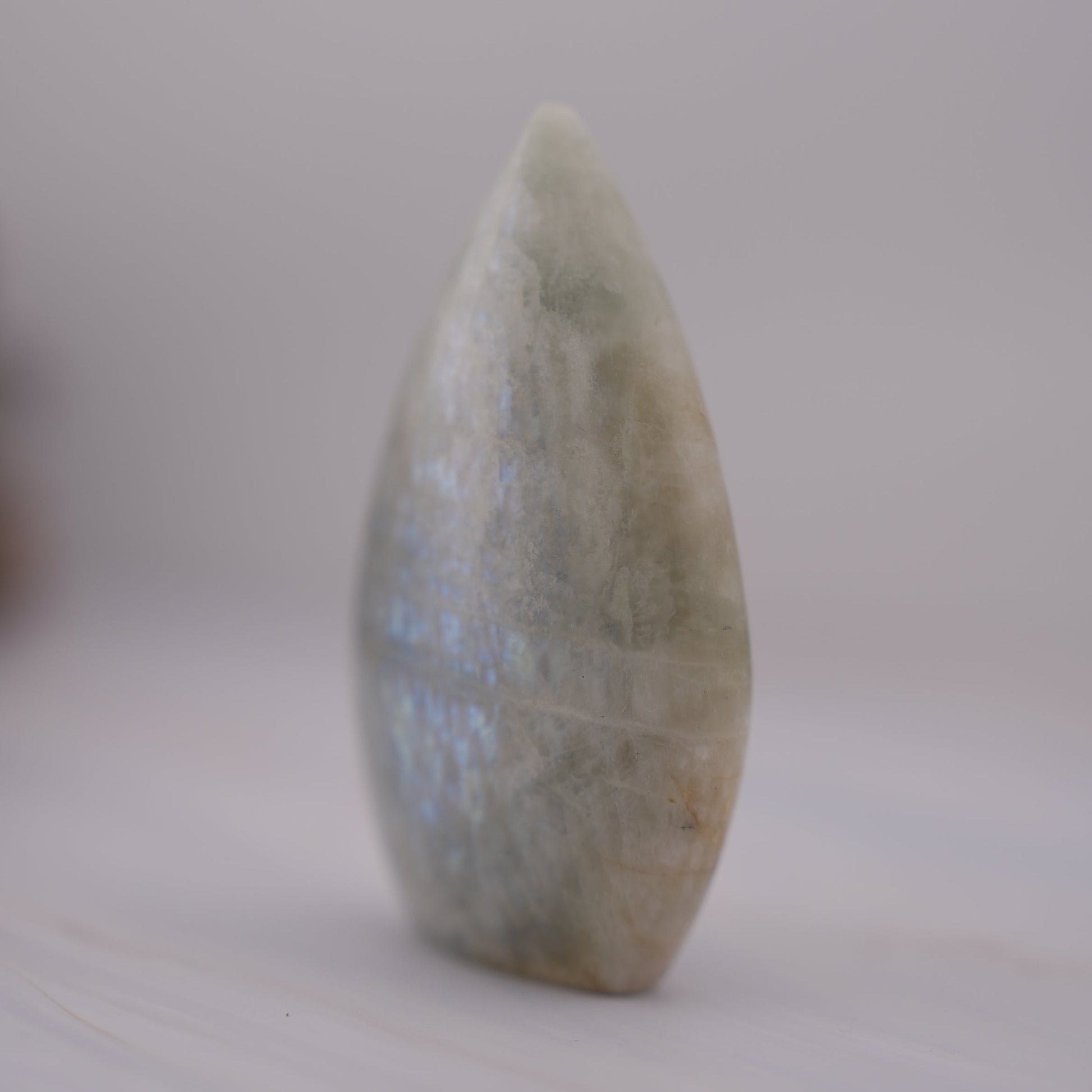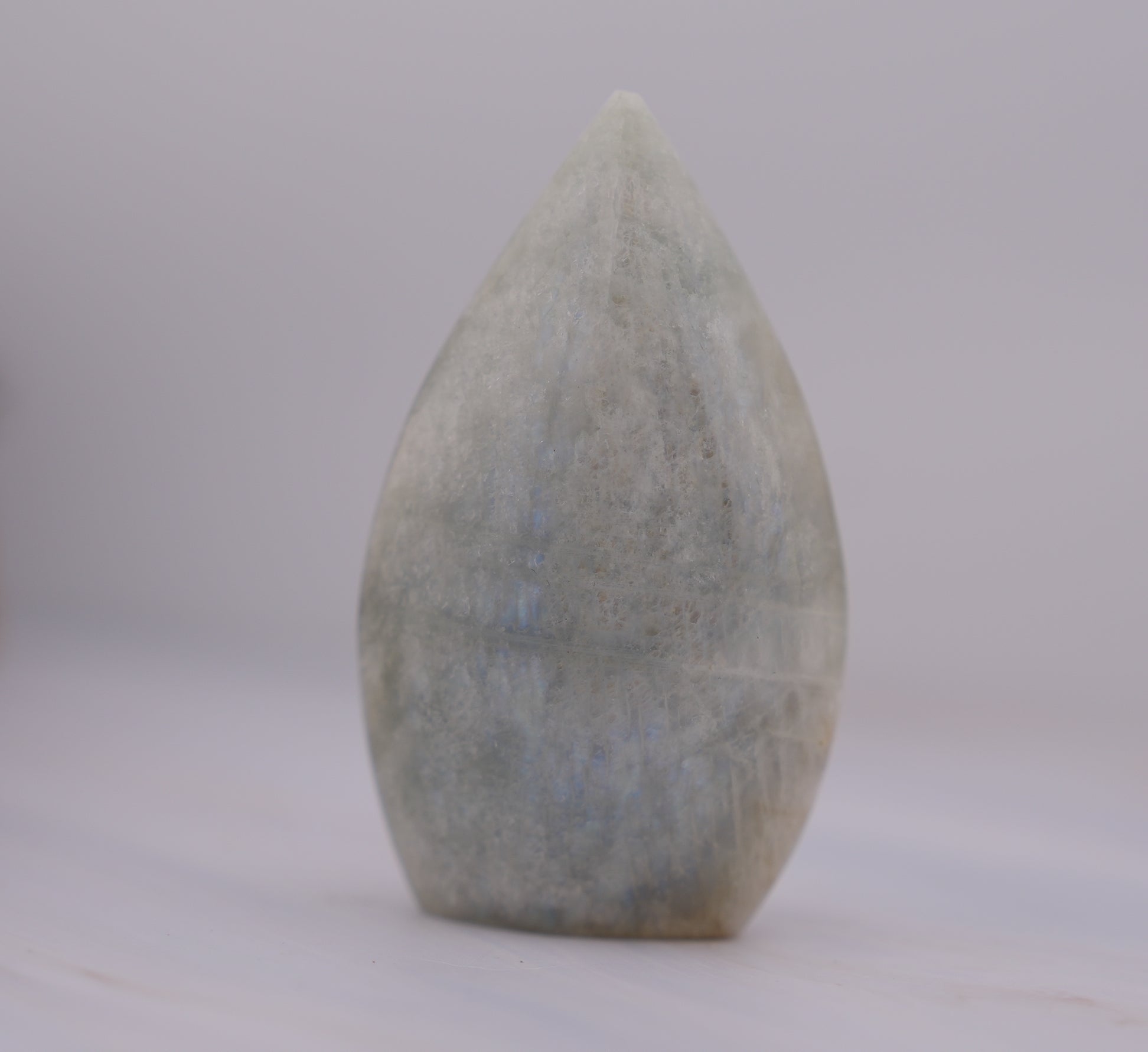 疲れた時や不安な時に手のひらで包み込むことで、石のエネルギーをダイレクトに受け取ることができます。両面に見られる美しいシラーは、あなたの心に月の光のような穏やかな希望を灯してくれる、特別な輝きです。