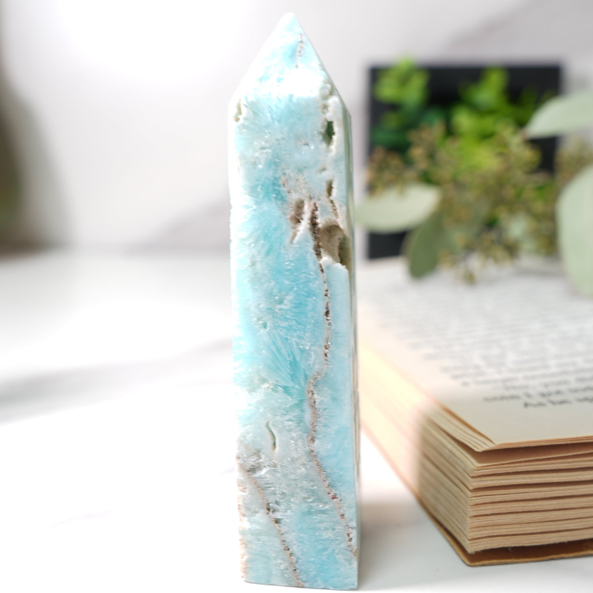 淡いブルーと細かなドゥルージーが重なるこのタワーは、胸の奥にしまい込んだ感情をそっとすくい上げ、自分の本音に気づく余白をつくってくれます。