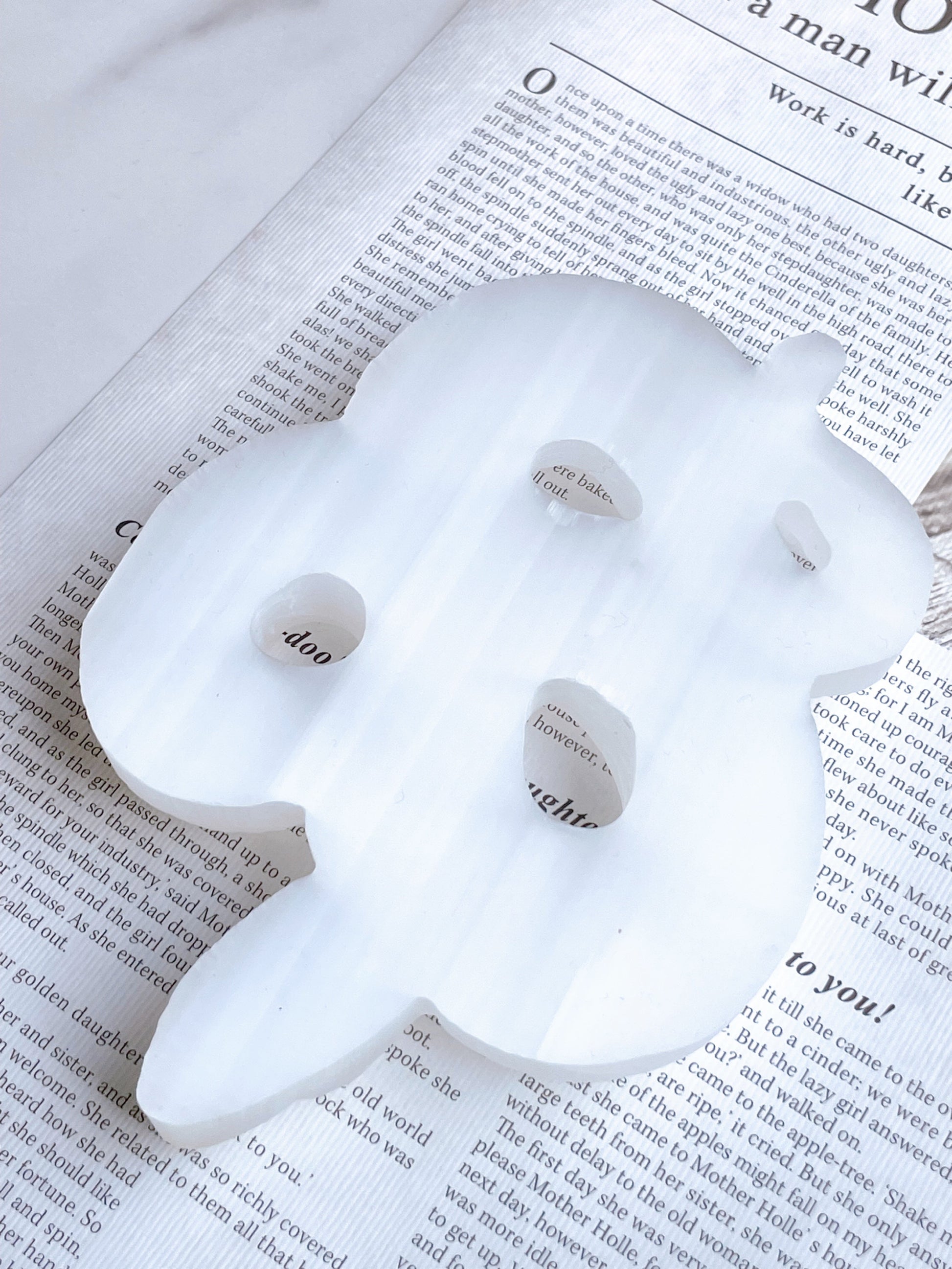 まるで月光に照らされた神秘的な白蛇のような、美しく存在感のあるセレナイト蛇形。